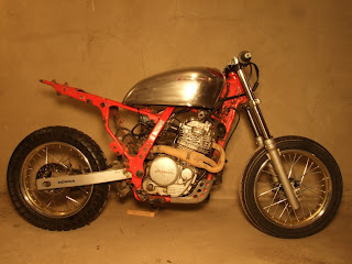 Made some serious progress recently. I finally managed to put the wheels together – I painted both rims, put on new bearings, new seals, new tube for the front wheel and tires of course. I also lowered the front suspension – in summary the front of the bike is now about 10 cm lower than originally. Now I have to slightly raise the front mountings of the fuel tank and modify the whole sub-frame. That will be a challenge, I’m excited.